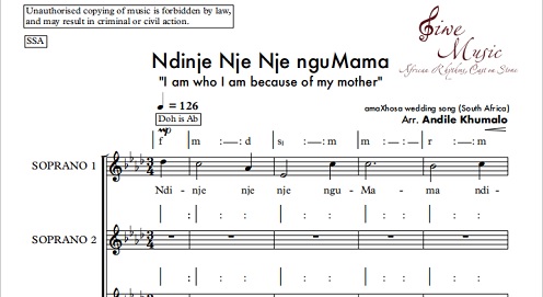 Ndinje nje nje nguMama - "I am who I am because of my mother" (a wedding song from amaXhosa people in Eastern Cape in South Africa)